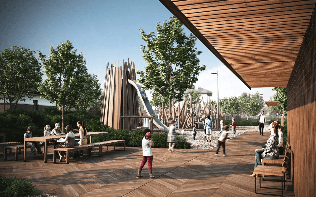 Детская площадка задумана как обучающее пространство для подвижных и любопытных.